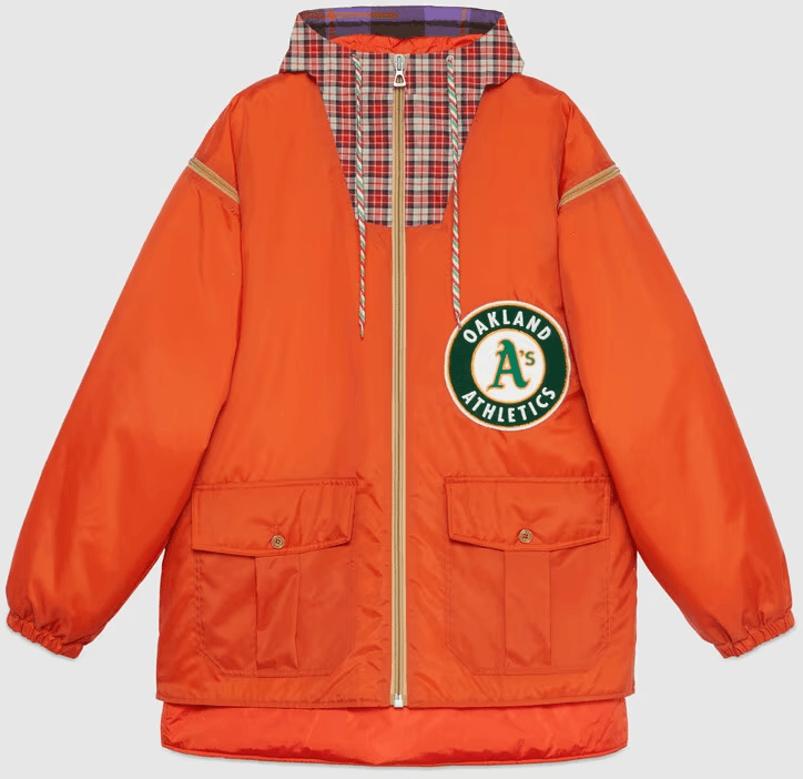 Chilly game nights don’t mean you have to sacrifice style for warmth — and this Athletics jacket is the proof. It’s designed with a lightweight nylon material featuring two front pockets, a hood and contrasting gingham hood for added style.