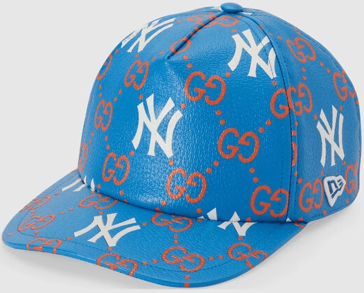 Show some love to the Yankees with a chic baseball cap featuring the team’s iconic logo paired with Gucci print.